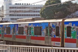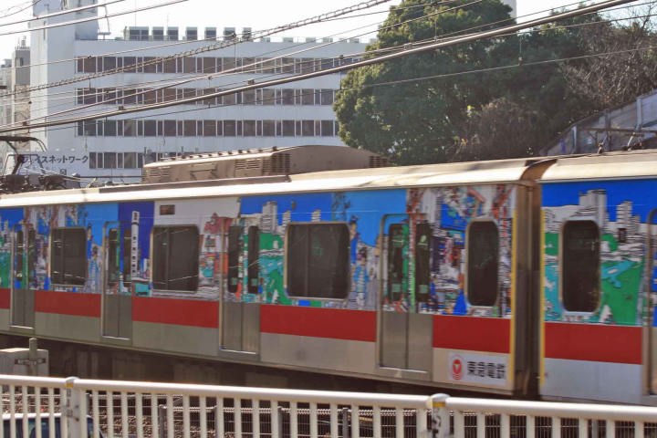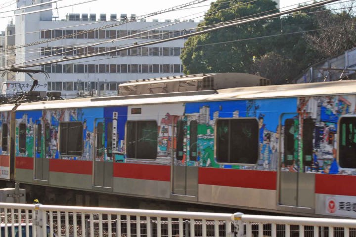 2025年12月11日 目黒区上目黒1で撮影できました。実は12月7日偶然渋谷区猿楽町で撮影(対向車線と重なり先頭車両のみ)でした。調査、予想して12月11日目黒区上目黒1で撮影できました。時間はほぼ同じでしたが、走行が逆で代官山駅から中目黒駅でした。よって先頭車両は撮影できなかっです。10両編成です。