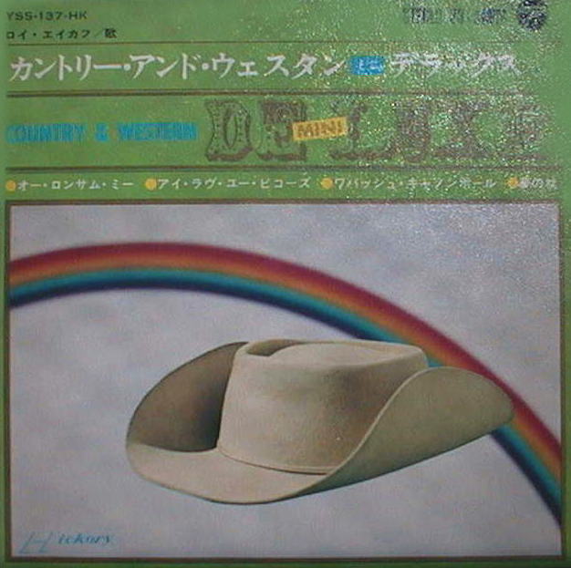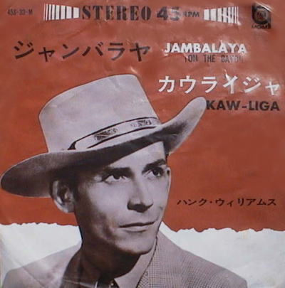〜カントリー・ミュージックの想い出〜♪♪♪ ■ 「Hank & Audrey with The Drifting Cowboys」 私の音楽体験の中で、 特にドラマティックな想い出が、沢山詰っている為、 何となく扱いが遅くなってしまいました。 このページでは、私の田舎生活での50年代と、 60年以降の2つに分けて書こうと思います。 そして、60年代以降の想い出は、 ハンク・ウイリアムス、ハンク・スノウ マーティ・ロビンスその他 自分も歌った懐かしい人達と歌の数々、そして、聴いて楽しんだ時代のカントリー・シンガーや 曲について、思いつくまま進めようと思います。 @ 50年代の想い出。(高校時代まで) 小学校低学年時代は、朝鮮戦争もあり、民間放送も始まったばかりで、 番組といっても、NHKラジオの 「紅白歌合戦」 「君の名は」 ぐらいが楽しみという有様でした。 道路に木炭車が走っていましたし、子供の私なども、遊び半分とはいうものの、落ちている鉄くずを、 近くのくず物屋に売って、お小遣いにした想い出があります。 戦後復興の厳しい時代でした。食べ物も、着物も、住宅もおぼつかない我慢の時期でしたが、 小学高学年になると、テレビで、プロレス中継を観た憶えがありますから、 経済の回復も目覚しい速度だったのでしょうし、国威発揚のために、マスコミも頑張ったのかもしれません。 親は、大変だったでしょうが、子供にとっては、毎日が楽しく、鬼ごっこ、ビー球、 竹馬、パッチン、棒飛ばし…。暗くなるまで、外でワイワイやっていたものです。 今の子供達より幸せだったはずで、私の場合、親が映画好きだったおかげで、より幸せでした。 ![]() ■ 「Colt Peacemaker」 ▽ 小学から中学低学年の頃、西部劇映画で、 ウエスタン音楽 を知ることになりました。 ♪ 「真昼の決闘」: 「ハイ・ヌーン」: テックス・リッター。 ゲーリー・クーパーと、グレース・ケリー主演で、名作と言われています。 状況が似ている「必殺の一弾」 のほうが、私にとっては、好きな映画ですが、 歌もかなりヒットしました。フランキー・レーンの歌の印象の方が強く残っています。 ♪ 「シェーン」: 「遥かなる山の呼び声」 これぞジョージ・スティーブンス監督の不朽の名作です。 音楽は、ビクター・ヤングのインストですが、随分ヒットしました。悪役のジャック・パランスのカッコ良さ、 別れのラスト・シーンは、今も鮮明ですし、この映画の出演者が後に、次々と亡くなっていくという、 ミステリアスな話題も忘れられません。 ♪ 「大砂塵」: 「ジャニー・ギター」: ペギー・リー 。 男優のスターリング・ヘイドンより、 ジョン・クロフォードの逞しい女の印象の強い映画でした。ペプシ・コーラの社長だとか聴いた事があります。 親しみやすいメロディから、比較的早くから、私の持ち歌になったものでした。 ♪ 「帰らざる河」: 「帰らざる河」: マリリン・モンロー。 ロバート・ミッチャムは好きな俳優で、 異色西部劇でしたが、モンローの愛らしさの良く出た映画でした。 この年あたり、モンロー&ディマジオが、新婚旅行で日本へ来たはずです。 ♪ 「アラモの砦」: 主演のスターリング・ヘイドンは、ヌーボーとした風情で、 確かジム・ボウイ役でしたが、好きな俳優でした。 挿入歌かどうか忘れましたが、「デイヴィー・クロケットの唄」: テネシー・アーニー・フォード で流行りました。 ♪ 「誇り高き男」: 「誇り高き男」 主演のロバート・ライアンがあまり好きではないのですが、 共演のジェフリー・ハンターは、気に入っていました。「捜索者」 でも好演しています。 映画音楽は、珍しく口笛でしたが、少し後で流行った、スリー・サンズの独特の演奏のほうが、 印象に残っています。 ラジオで聴いた曲で印象に残っているのは、 ♪ 「テネシー・ワルツ」: パティ・ペイジ。 永遠の名曲といえます。江利チエミのデビュー曲だったように記憶しています。 後に、歌詞を男用に変えて、持ち歌にしたものです。 ♪ 「涙のワルツ」: パティ・ペイジ。 この頃、カントリー・ソングが、ビッグ・バンド出身の歌手にも好まれ、 アメリカでのカントリー・ソングの、圧倒的な人気のほどがうかがえます。 ♪ 「ジャンバラヤ」: ジョー・スタッフォード。 彼女は、私のアイドルですが、ハンク・ウイリアムスと同時のヒットのはずなのに、 彼女しか印象にありません。 ♪ 「エニー・タイム」: エディ・フィッシャー。 彼のビッグ・ヒットです。彼を嫌いな私としては、エディ・アーノルドより、ヒットした事が納得いきません。 残念な事に、同じ時期にヒットしたはずの、ハンク・ウイリアムスの、「ジャンバラヤ」や、 「ユア・チーティング・ハート」 、ハンク・スノウの 「涙のワルツ」 などをどうしても想いだせません。 放送されなかったのか、聴いていなかったのか、…。 生きているハンク・ウイリアムスの声に、憶えが無い事が、同じ時代を生きた者として悔やまれます。 成人してから、最もお気に入